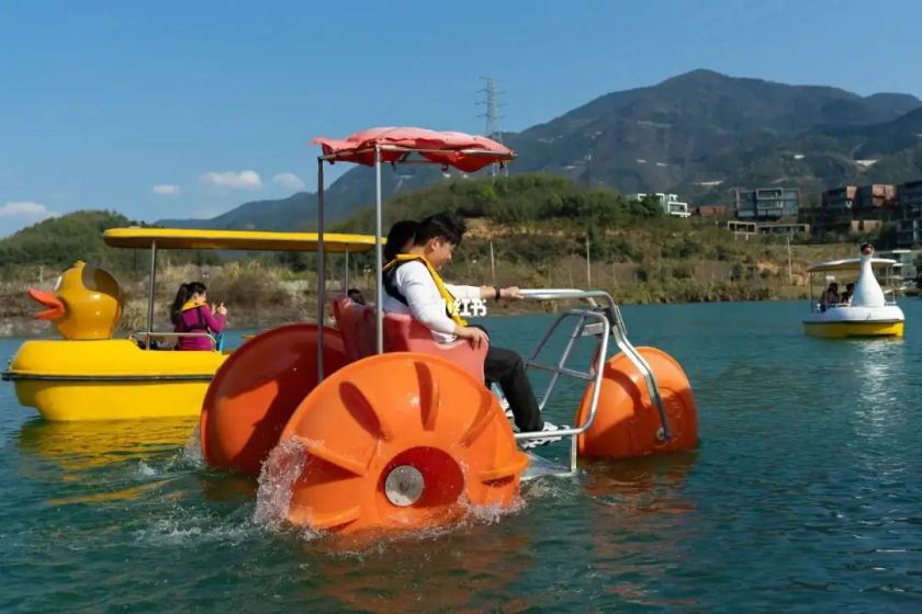 Three Big Wheels: The unique design of our water bike features three large wheels, providing exceptional stability and balance on the water.