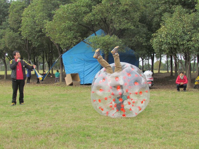 Players should wear comfortable clothing and remove any sharp objects or jewelry before entering the Bubble Soccer ball.